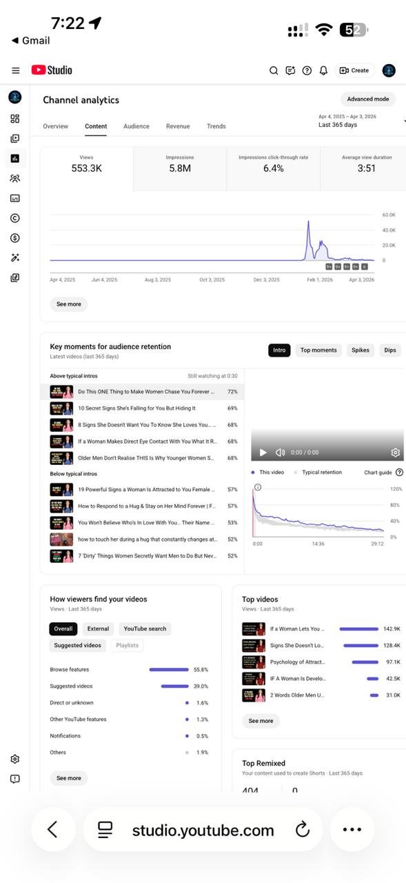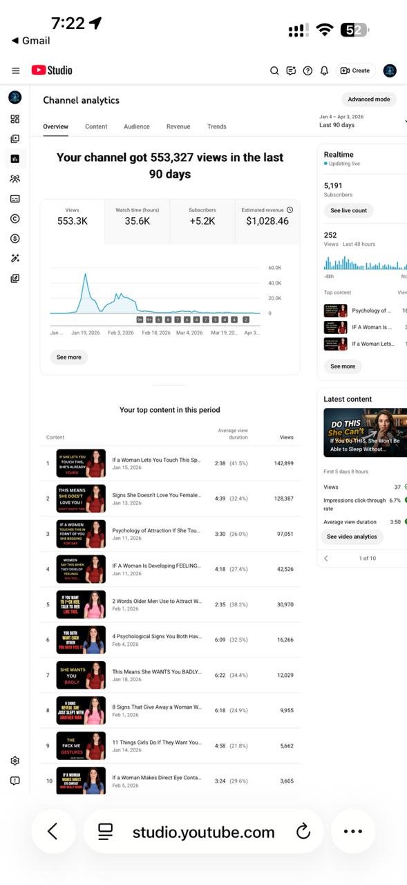 Established youtube account for sale with 5190 subscribers