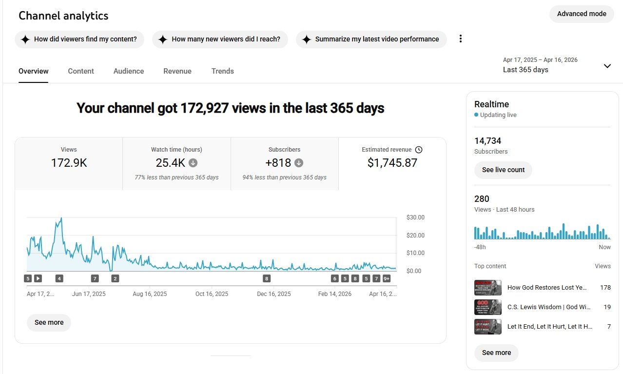 Hello, I Am Selling Monetized Channel With 14.7K+ Organic Subs. It Has Lifetime 926K+ Organic Views and Lifetime Estimated Revenue is $9.8K+. The Channel is 100% Monetized and Top Audience From United States. High $RPM $10+. You Can Change The Channel Name, URL, Niche, Profile Picture and Adsense Account. 100% Good Standing Account. You Can Make An Offer To Purchase. Safe and Secure Deal Accepted Through Escrow. If You Have Any Questions You Can Message Me. Thanks