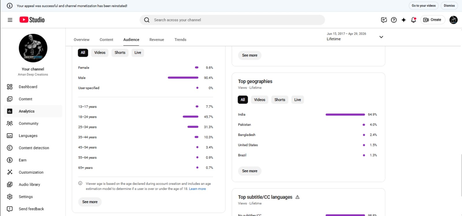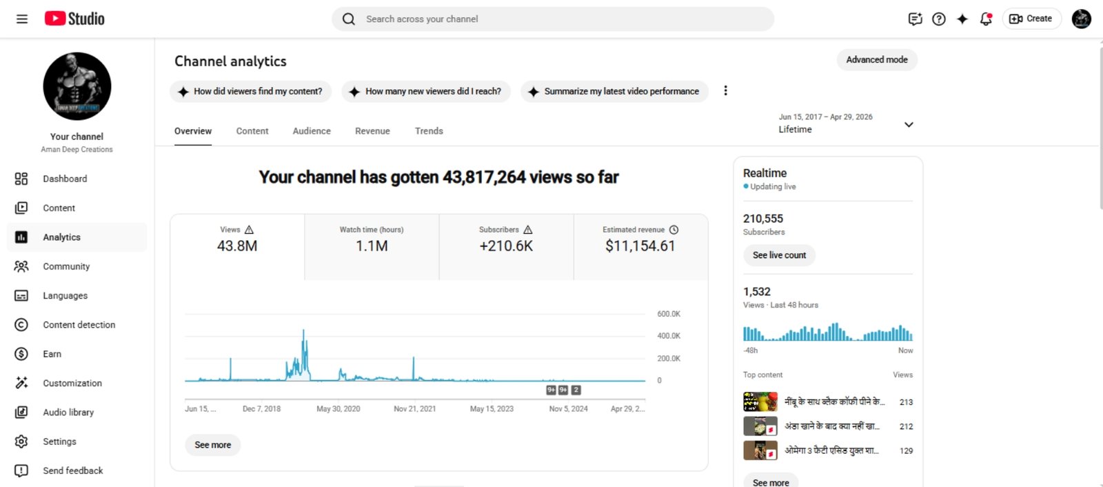 I'm selling my Organic Monetized YouTube channel. No Strike. No warning. 43.8M+ Total views ✅ You can change channel's name, niche & content anytime. Screenshots are attached below