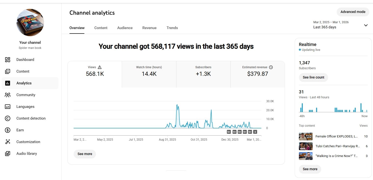 Established youtube page for sale with 1340 subscribers