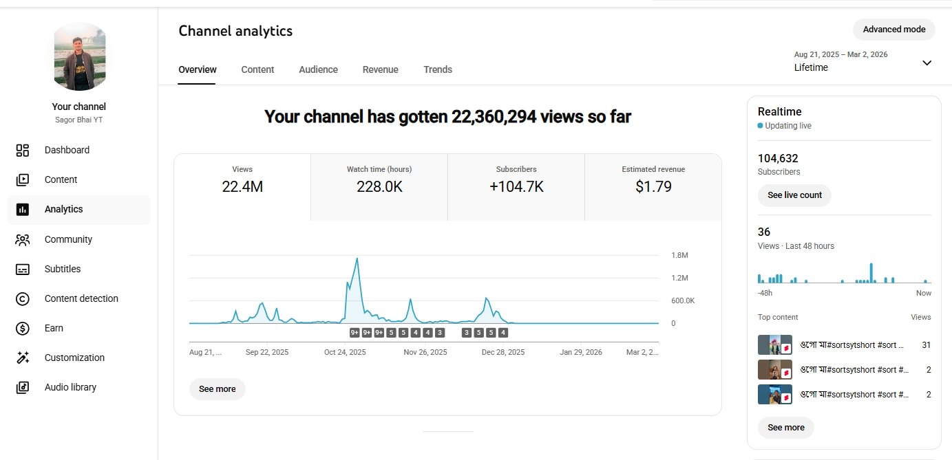 Hello, Youtube Channel For Sale With 104K+ Subs With Verified Badge Name. You Can Rebrand The Channel and Can Apply For Monetization. Escrow Accepted For Safe Deal. Thank You