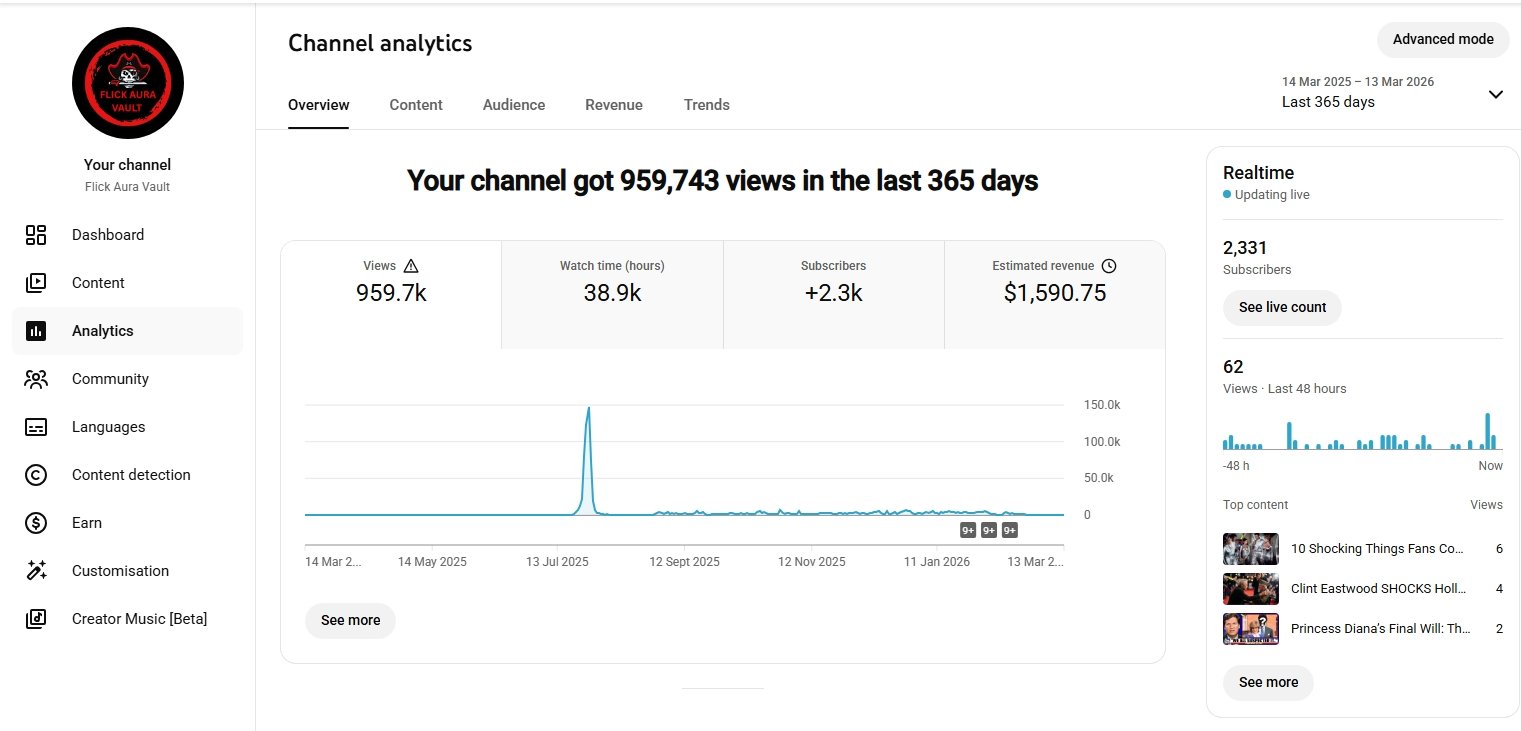 Hello, I Am Selling Organic Monetized Channel With 3.3K+ Organic Subs. The Channel is 100% Monetized. It Has Lifetime 959K+ Views and Lifetime Revenue $1,590. Top Audience Last 90 Days From United States and Lifetime Indian. You Can Rebrand The Channel According Your Niche. Instant Adsense Change Button is On. The Channel is 100% in Good Standing. No Copyright Strike No Community Warning. You Can Make Offer To Purchase The Channel. Escrow Accepted For Safe Deal. For More Info You Can Message Me. Thank You