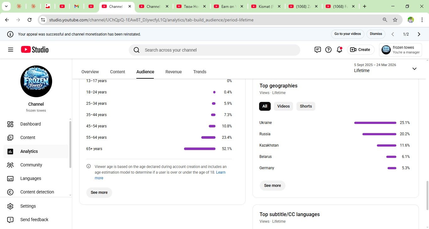 froz**** youtube Channel for Sale