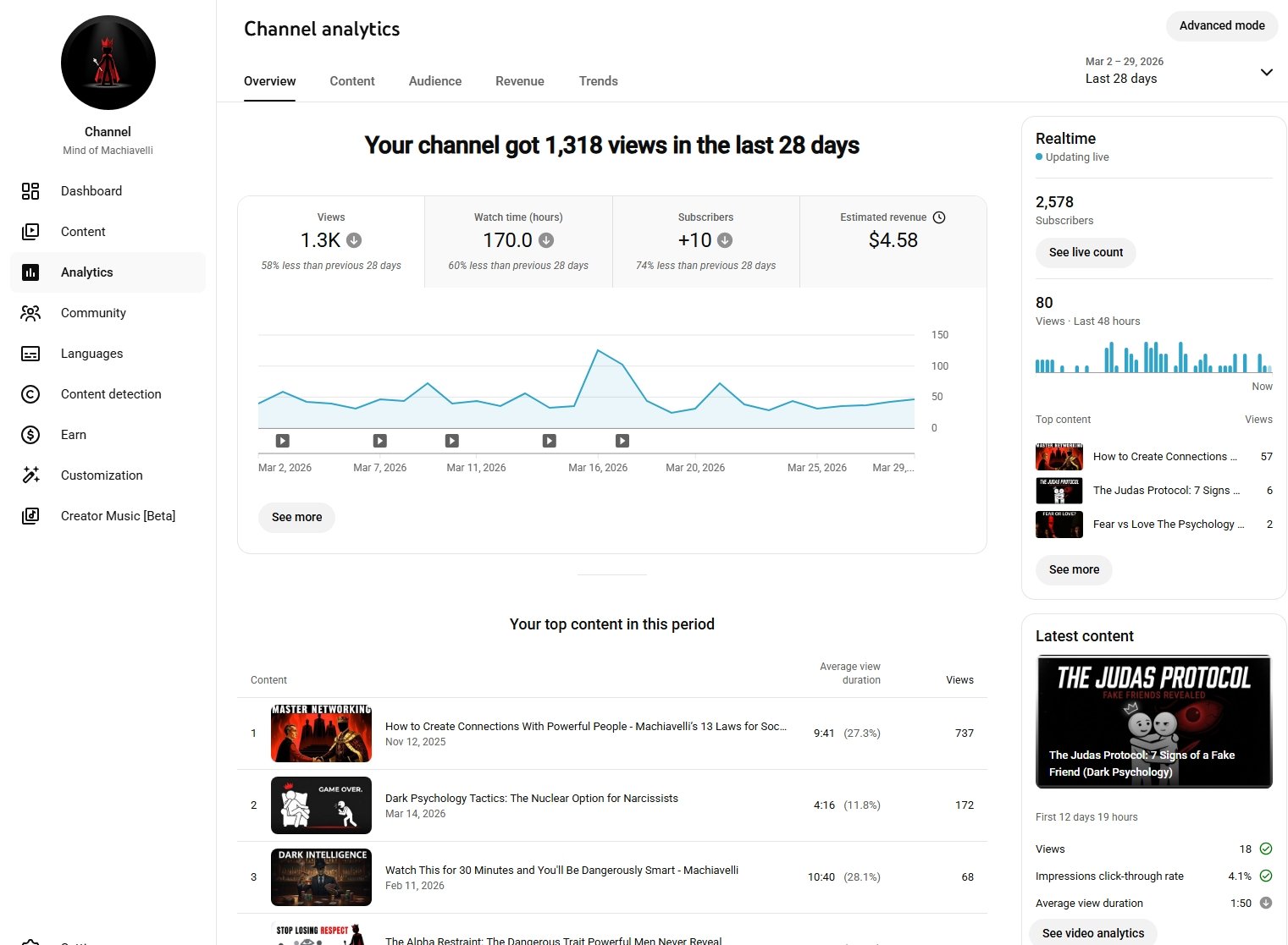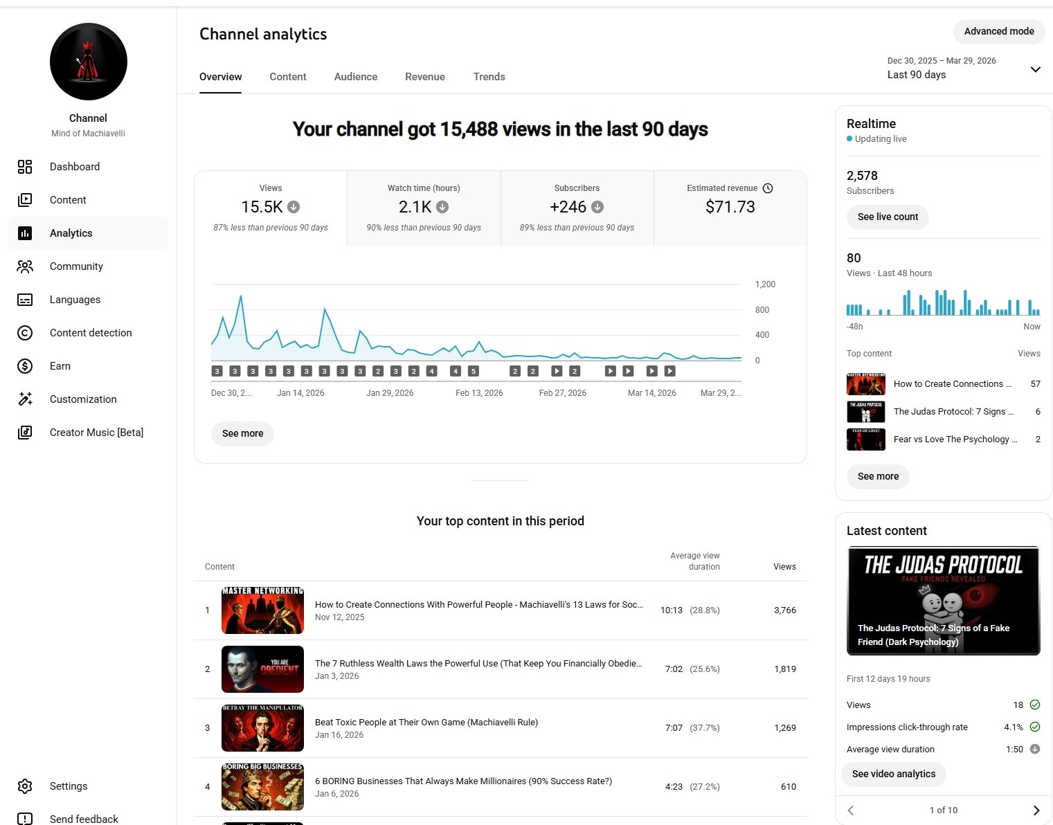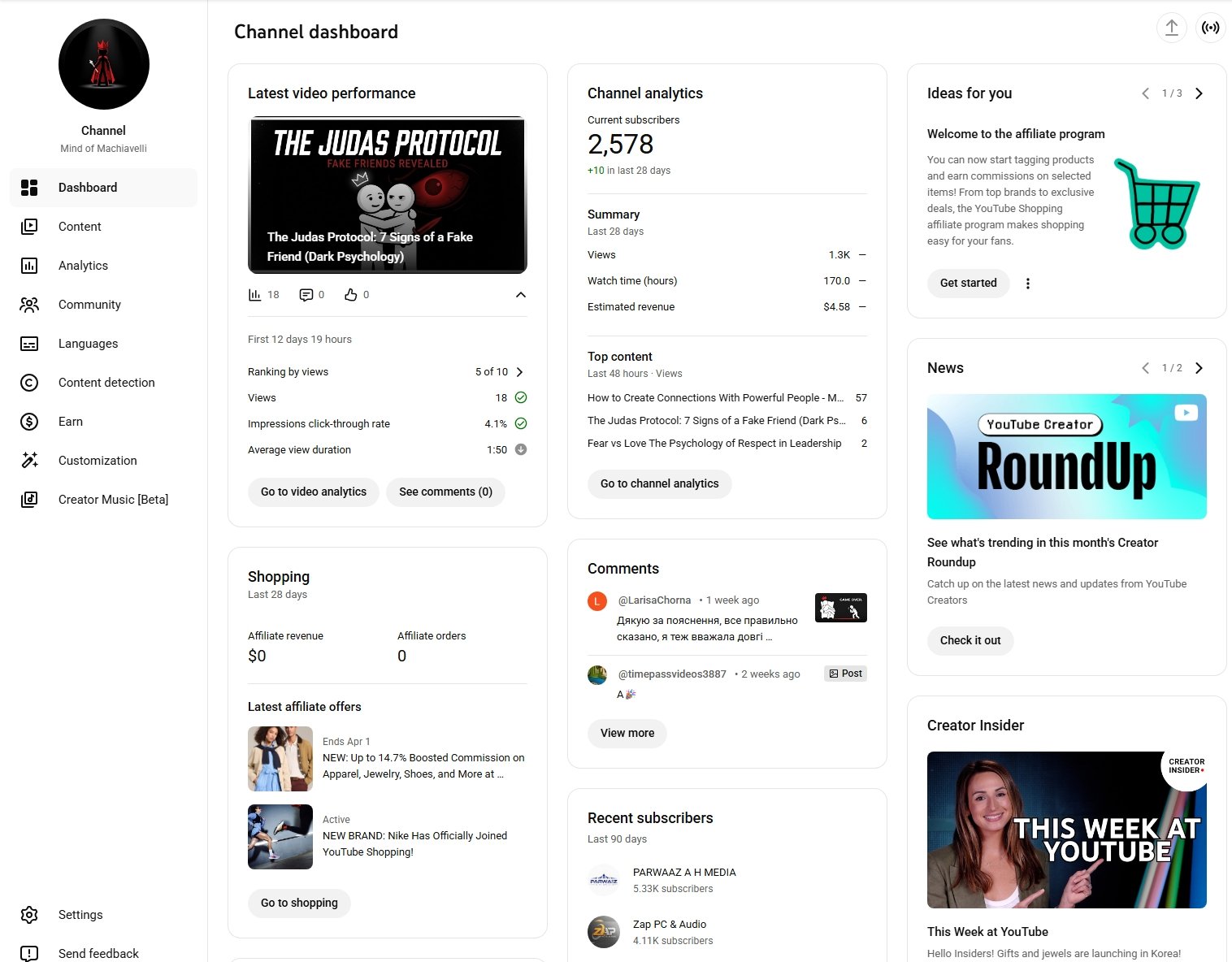 Established youtube account for sale with 2570 subscribers