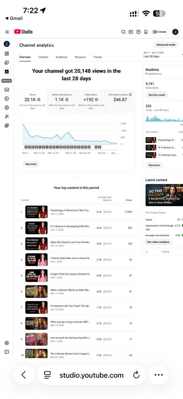 Hello, Youtube Monetized Channel For Sale With 5.1K+ Subs. The Channel is 100% Monetized and With Top USA Audience. It Has Lifetime 500K+ Views and $1000+ Revenue Generated. You Can Rebrand The Channel According Your Niche. Safe Deal Through Escrow Accepted. DM For More Monetized Channels Or Info. Thank You