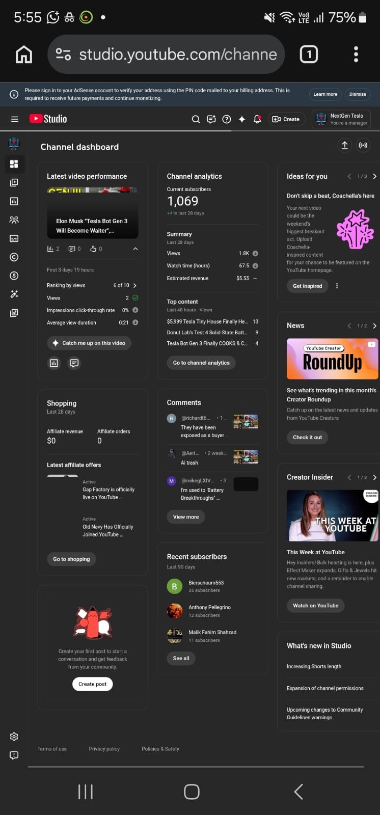 Hello, youtube channel for sale with 1K+ subs. The channel is 100% monetized. Top audience from united states and instant adsense change button is on. you can change the channel name,url,niche and adsense etc... safe and secure deal accepted. Dm for more info