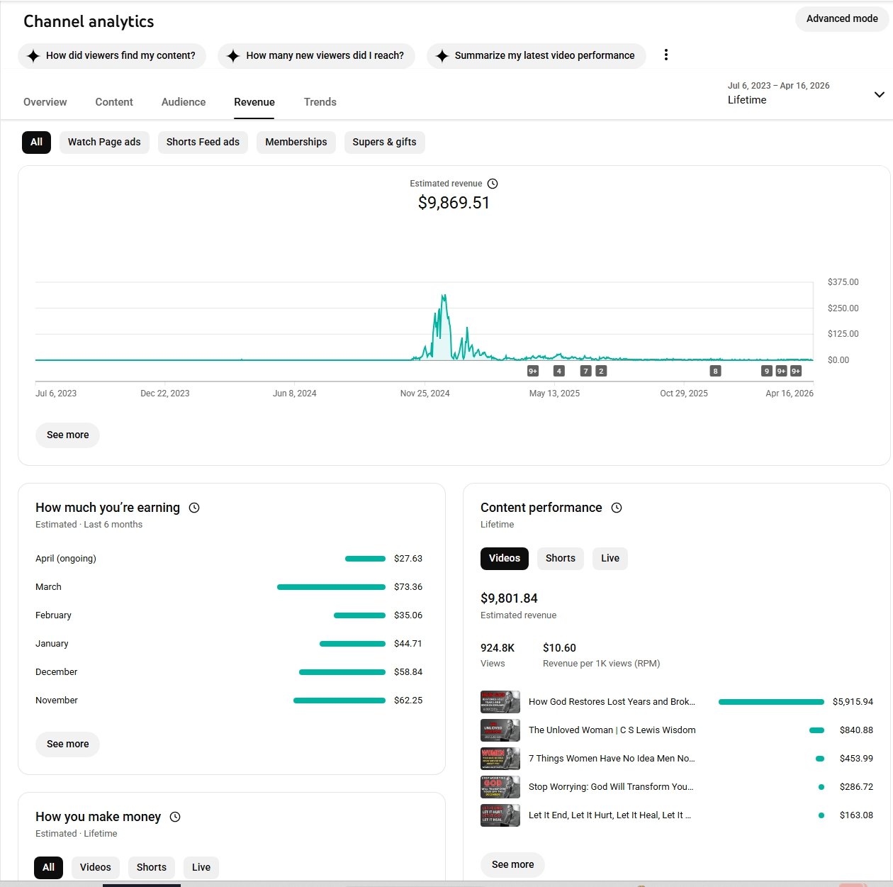 Hello, I Am Selling Monetized Channel With 14.7K+ Organic Subs. It Has Lifetime 926K+ Organic Views and Lifetime Estimated Revenue is $9.8K+. The Channel is 100% Monetized and Top Audience From United States. High $RPM $10+. You Can Change The Channel Name, URL, Niche, Profile Picture and Adsense Account. 100% Good Standing Account. You Can Make An Offer To Purchase. Safe and Secure Deal Accepted Through Escrow. If You Have Any Questions You Can Message Me. Thanks